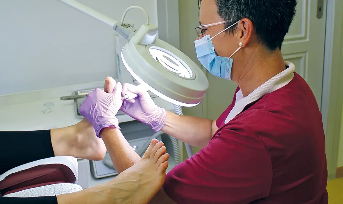 Les personnes atteintes de diabète doivent inspecter régulièrement leurs pieds afin de prévenir les blessures pouvant résulter de lésions nerveuses et de troubles de la circulation. Pour être remboursés par les caisses maladie, les soins podologiques médicaux doivent être effectués par des professionnels spécialement formés.