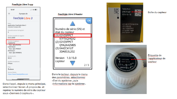 Il a été constaté que certains capteurs FreeStyle Libre 3 et Libre 3 Plus peuvent afficher des valeurs de glucose faussement basses. Veuillez vérifier vos capteurs sur www.FreeStyleCheck.com et cesser immédiatement d’utiliser tout capteur concerné. Vous pouvez y demander gratuitement un remplacement. Vous trouverez ici la déclaration officielle d’Abbott.